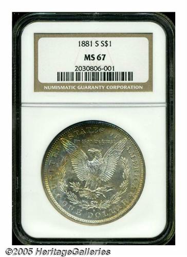 1881-S S$1 MS67 NGC. Fully struck, highly lustrou