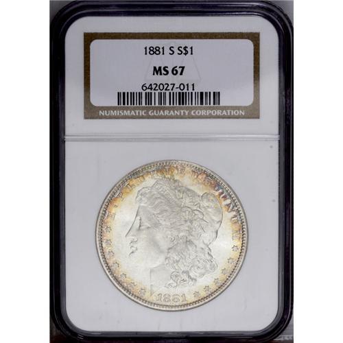1881-S S$1 MS67 NGC. Lovely gold, red, and cobalt toni 1881-S[img border='0' src='http://www.heritag