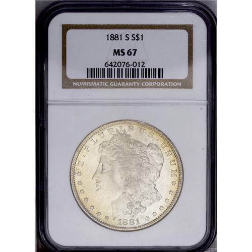 1881-S S$1 MS67 NGC. Lovely golden-gray toning occurs 1881-S[img border='0' src='http://www.heritage