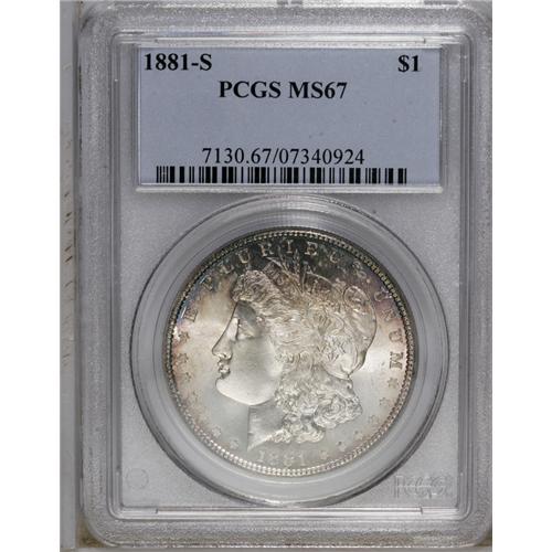 1881-S S$1 MS67 PCGS. A boldly struck Superb Gem that