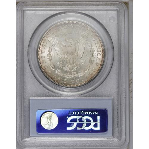 <B>1881-S<img border='0' src='http://www.heritagecoins.com/images/star.gif' width=10 height=10>$1> MS67 PCGS.</B></I> A boldly struck Superb Gem that has delightful patina on each side. Milky violet-cream patina appears on each side, while the upper obverse has a thick crescent of azure.