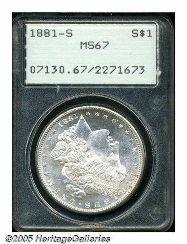 1881-S S$1 MS67 PCGS. Sharply struck, from mildly
