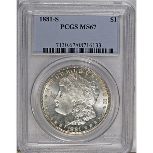 1881-S S$1 MS67 PCGS. The heavily basined dies that st