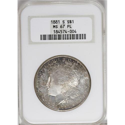 1881-S S$1 MS67 Prooflike NGC. The highly reflective s