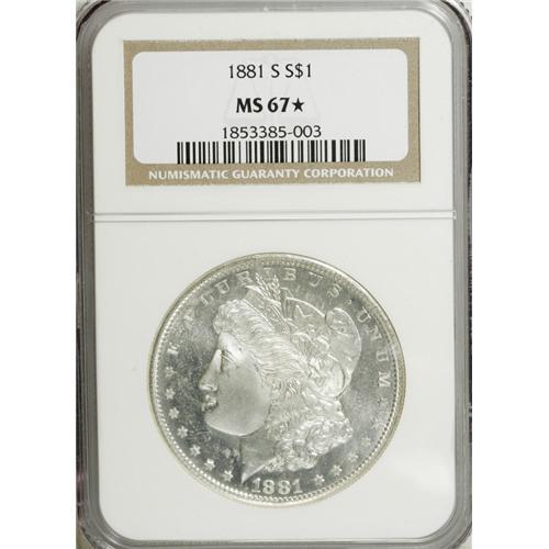 1881-S S$1 MS67 S NGC. Boldly impressed with delicate