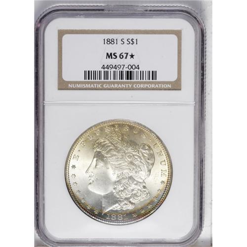 1881-S S$1 MS67 S NGC. The delicate peripheral arcs a