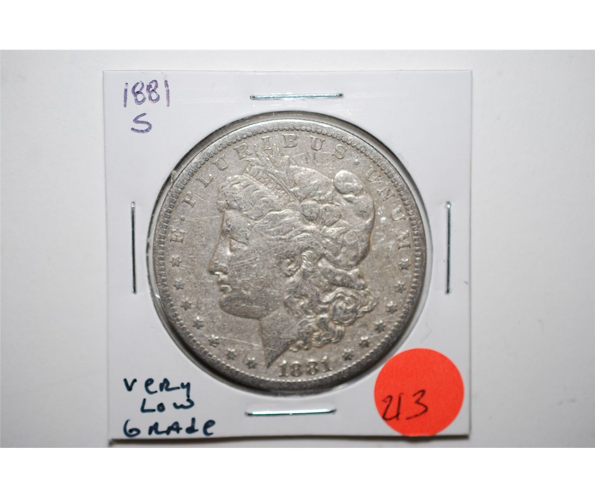 1881-S Silver Morgan $1; Very Low Grade; EST. $25-30