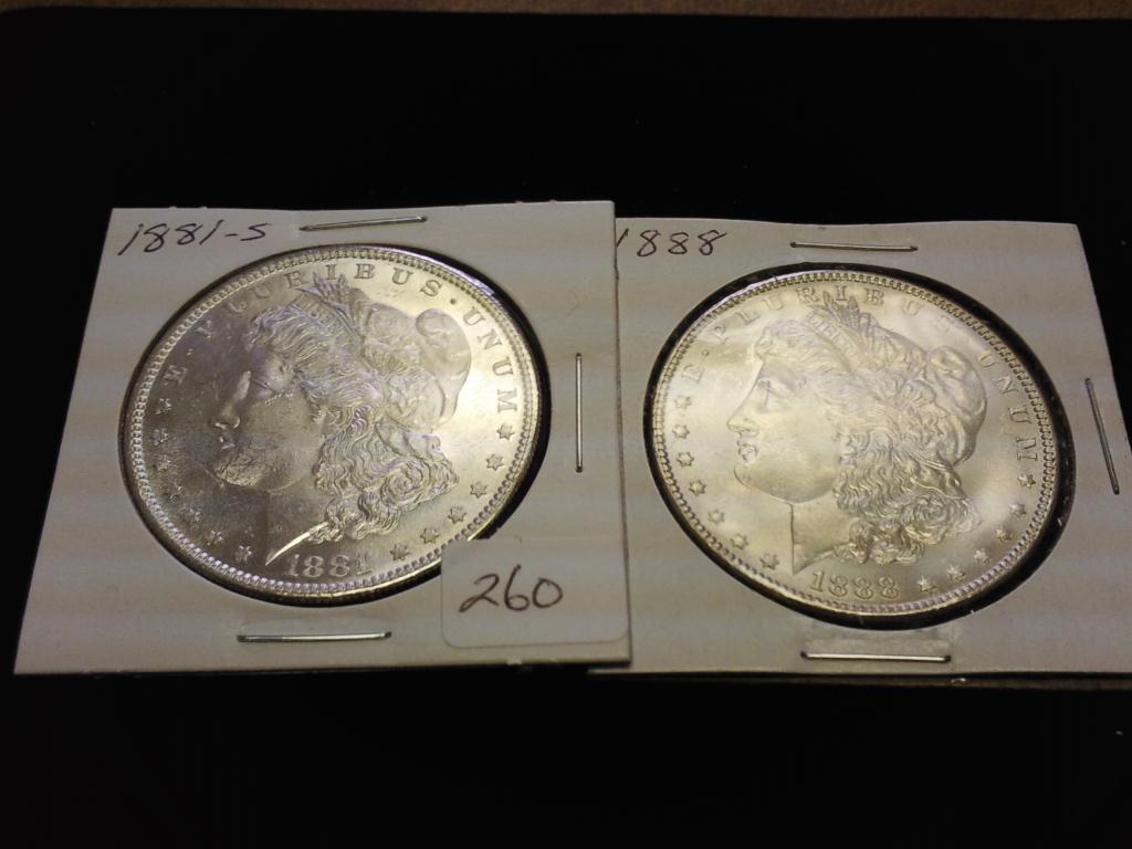 1881-S (UNC) & 1888 (UNC) MORGAN SILVER DOLLARS