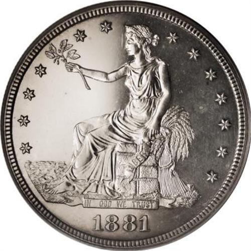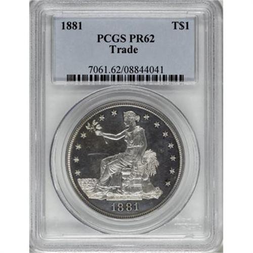 <B>1881 T$1 PR62 PCGS.</B></I> Hints of violet and gold patina enliven the silver-gray surfaces of this specimen, one of just 960 pieces struck for this proof-only issue. Boldly impressed with a number of wispy hairlines in the obverse and reverse fields.<BR><BR><B>Coin Engraver:</B> William Barber<BR><BR><b>Shipping:</b> Coins & Currency (<a target="_blank" href="http://www.heritageauctions.com/common/shipping.php">view shipping information</a>)