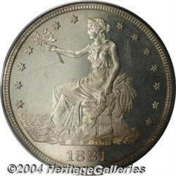 <B>1881<T$1> PR64 Cameo PCGS.</B></I> The few hairlines that are present in the obverse fields are made less prominent by the presence of a milky patina somewhat that also serves to dilute the boldness of the obverse contrast, but the reverse is untoned and displays some very impressive contrast. The strike is bold and just a bit of light rose color is seen at the lower part of the obverse. Flashy and very reflective. <BR><BR><B>Important notice:</B> Heritage usually auctions material at the rate of 200-250 lots per hour. On some occasions eBay Live bid software or the Internet may not be able to keep up with the pace of the auction. We recommend placing a realistic absentee bid now as insurance to avoid disappointment. Occasionally the auctioneer may eliminate or reject an eBay Live bid, and the auctioneer may also reopen a lot after the close of the eBay live bidding (usually because we missed an audience bid), and may reject your bid even if it shows you as the winning bidder. By bidding via eBay Live, you agree that Heritage may award the lot to another bidder at its sole discretion under the circumstances described above or any other reasonable circumstances. Since eBay bids are not shown to us until we open the lot on the floor, we treat those bids just like floor bids. In most cases the floor responds before the eBay bid is presented to us, due to Internet lag time, so for consistency we have made it a policy that floor bids are always considered first over tie eBay live bids. Also please note that all Heritage lots purchased through eBay Live carry a 20% Buyer's Premium. Please make sure you read the Terms and Conditions before you bid. </span></font></tr></table></td></tr></table>
