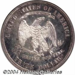 <table><tr><td><table><tr><td>1881 T$1 PR65 NGC. Due to incorrect die setting in the coinage press, the 1881 is often encountered with an uneven impression and poor definition over certain elements of the design. Not so the present survivor. Every feature is fully detailed, and the fields sparkle with appreciable reflectivity beneath a moderate coating of lavender-gray and rose-gold patina. A few stray hairlines are seen but do not detract, and there are no singularly mentionable blemishes. <BR><BR><B>Important notice:</B> Heritage usually auctions material at the rate of 200-250 lots per hour. On some occasions eBay Live bid software or the Internet may not be able to keep up with the pace of the auction. We recommend placing a realistic absentee bid now as insurance to avoid disappointment. Occasionally the auctioneer may eliminate or reject an eBay Live bid, and the auctioneer may also reopen a lot after the close of the eBay live bidding (usually because we missed an audience bid), and may reject your bid even if it shows you as the winning bidder. By bidding via eBay Live, you agree that Heritage may award the lot to another bidder at its sole discretion under the circumstances described above or any other reasonable circumstances. Since eBay bids are not shown to us until we open the lot on the floor, we treat those bids just like floor bids. In most cases the floor responds before the eBay bid is presented to us, due to Internet lag time, so for consistency we have made it a policy that floor bids are always considered first over tie eBay live bids. Also please note that all Heritage lots purchased through eBay Live carry a 20% Buyer's Premium. Please make sure you read the Terms and Conditions before you bid. <BR><BR><B>IMPORTANT ANNOUNCEMENT ABOUT RESERVES:</B> Heritage now divulges all reserves on its web site 7 days before every auction. If you want to know whether the reserve on this lot has been met, and if not, what the reserve amount is, please visit this lot page on the HeritageCoin.com web site, or email: bid@HeritageGalleries.com </span></font></td></tr></table></td></tr></table>