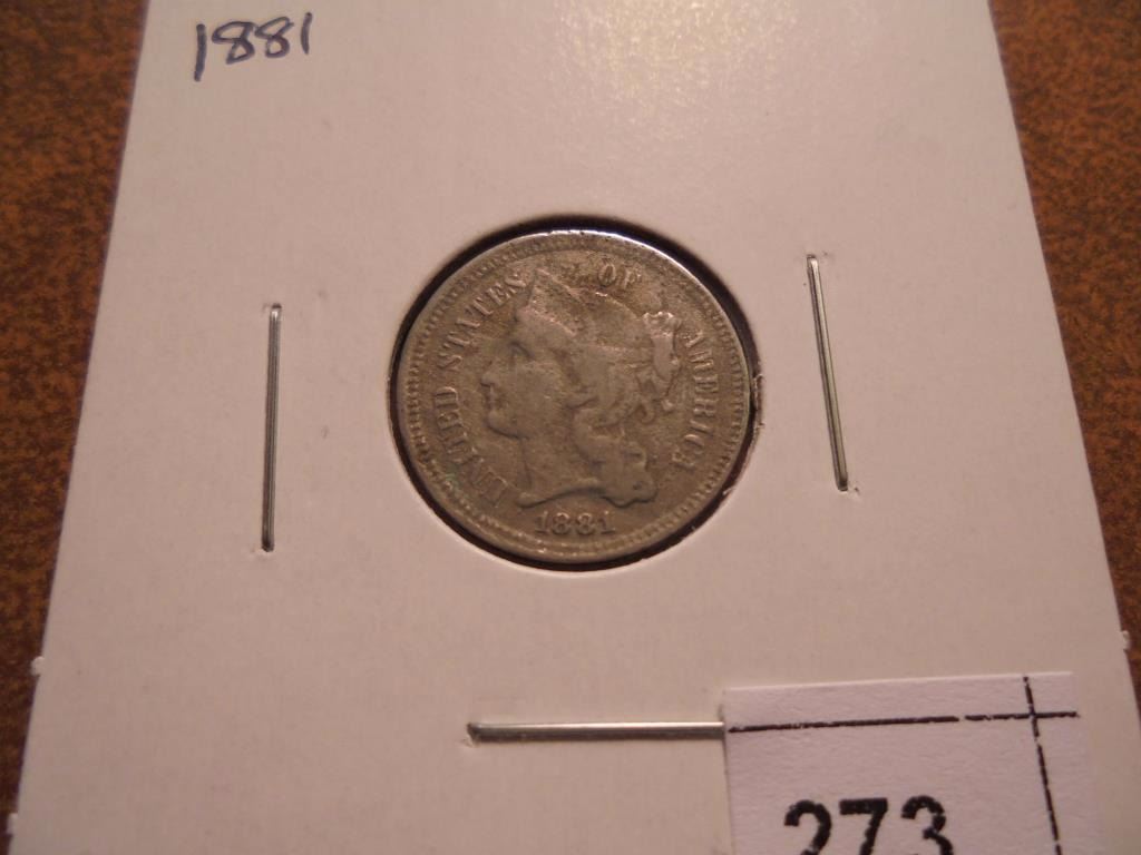 1881 THREE CENT PIECE (NICKEL) WITH VIRDIGRIS