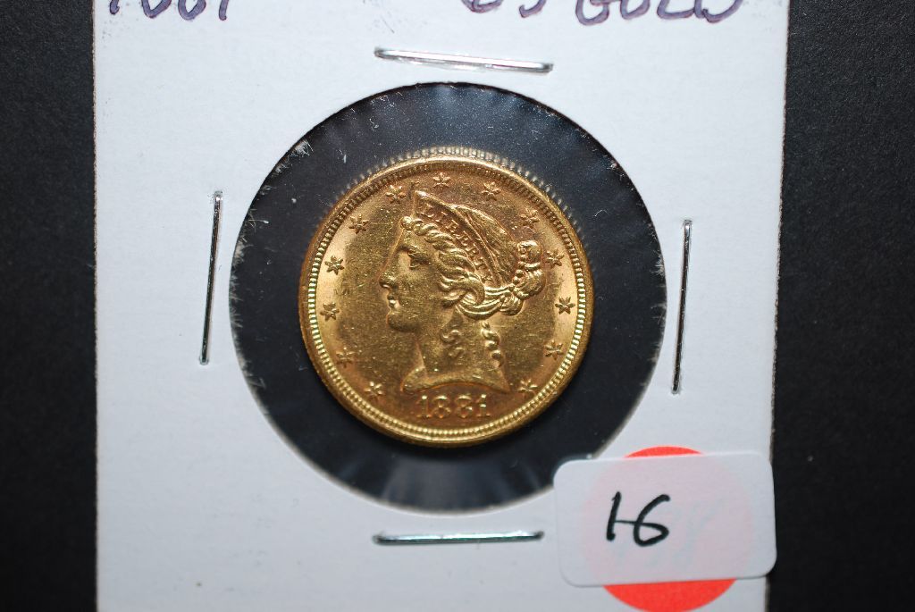 1881 US Liberty $5 Gold Coin; EST. $550-650
