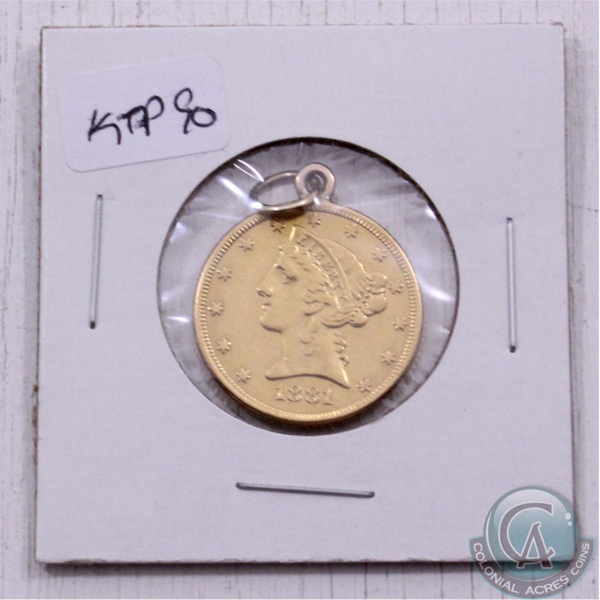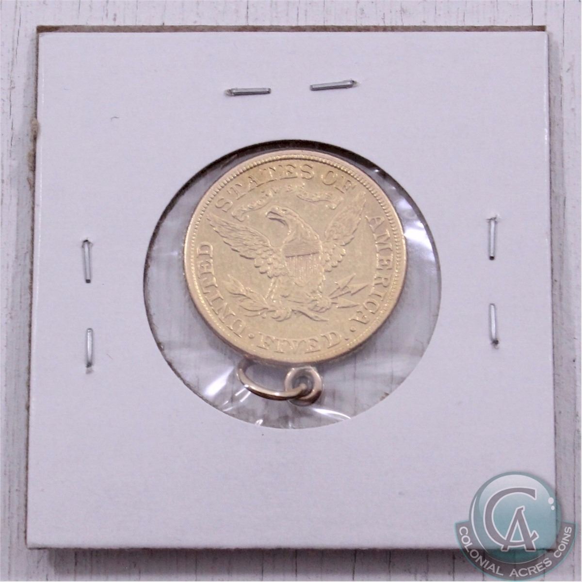 1881 USA $5 Gold with a Jewellery Loop Mounted on the rim. Coin is .900 Fine and contains 0.242 oz of Gold.
