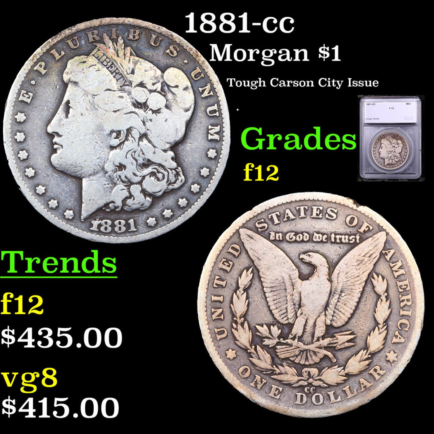 1881-cc Morgan Dollar $1 Graded f12 BY SEGS.