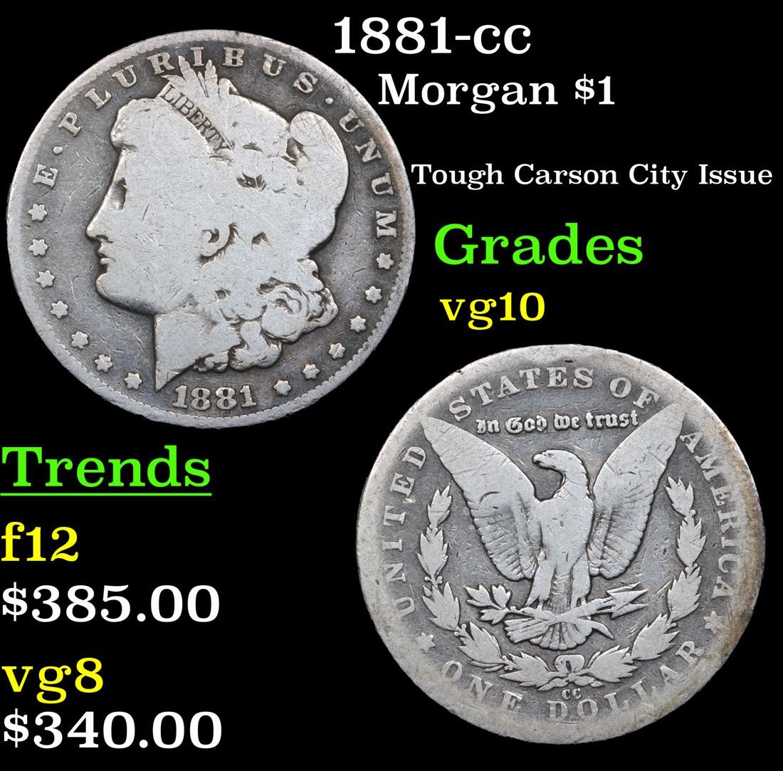 1881-cc Tough Carson City Issue . Morgan Dollar $1 Grades vg+.