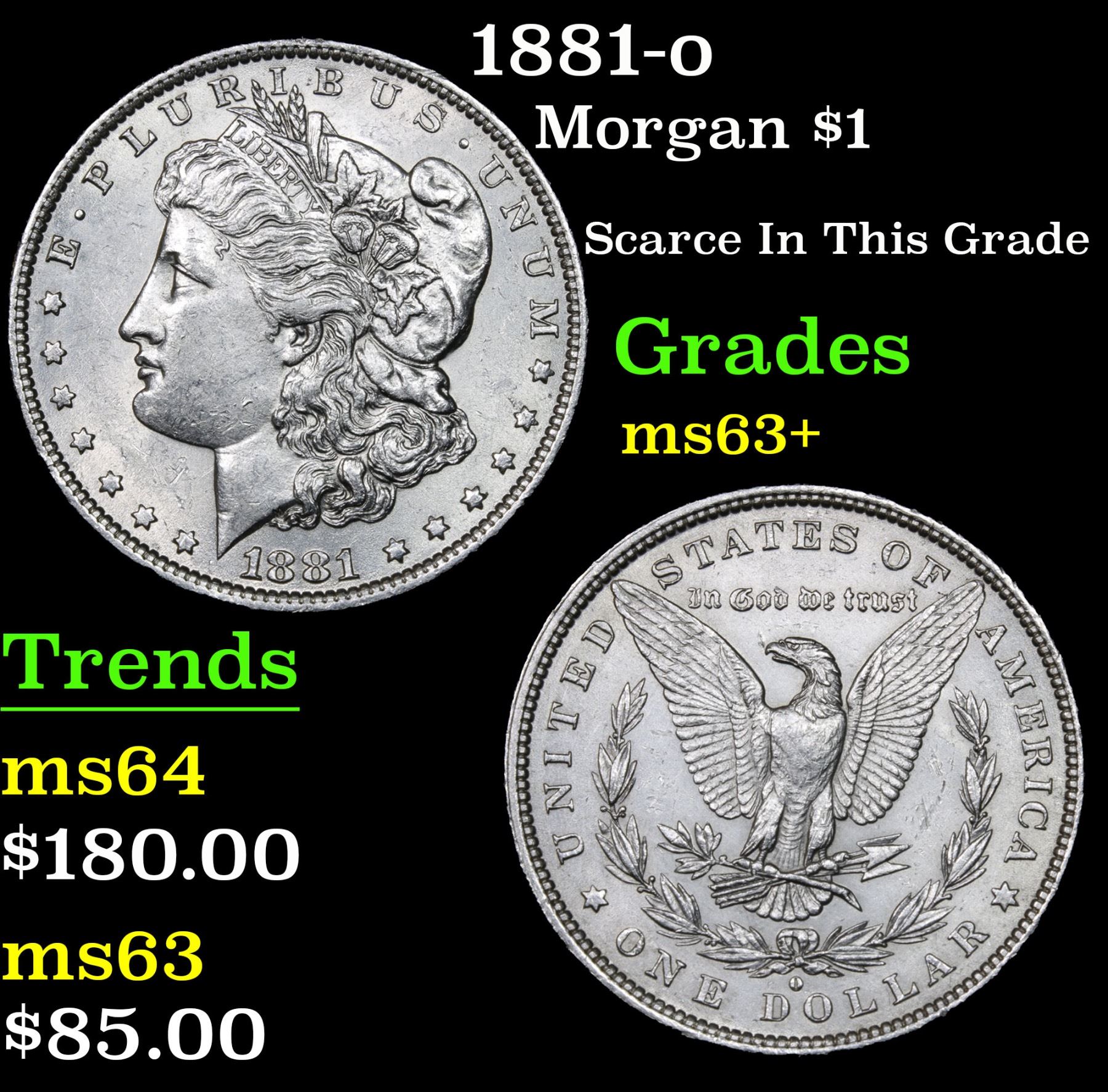 1881-o Morgan Dollar $1 Grades Select+ Unc. Scarce In This Grade
