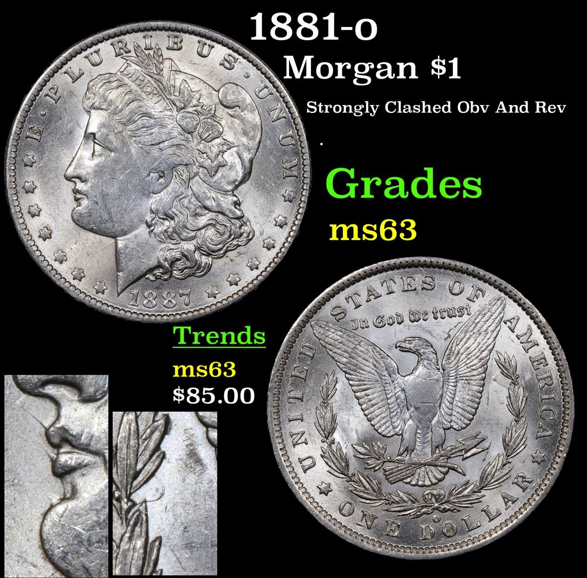 1881-o Strongly Clashed Obv And Rev . Morgan Dollar $1 Grades Select Unc.