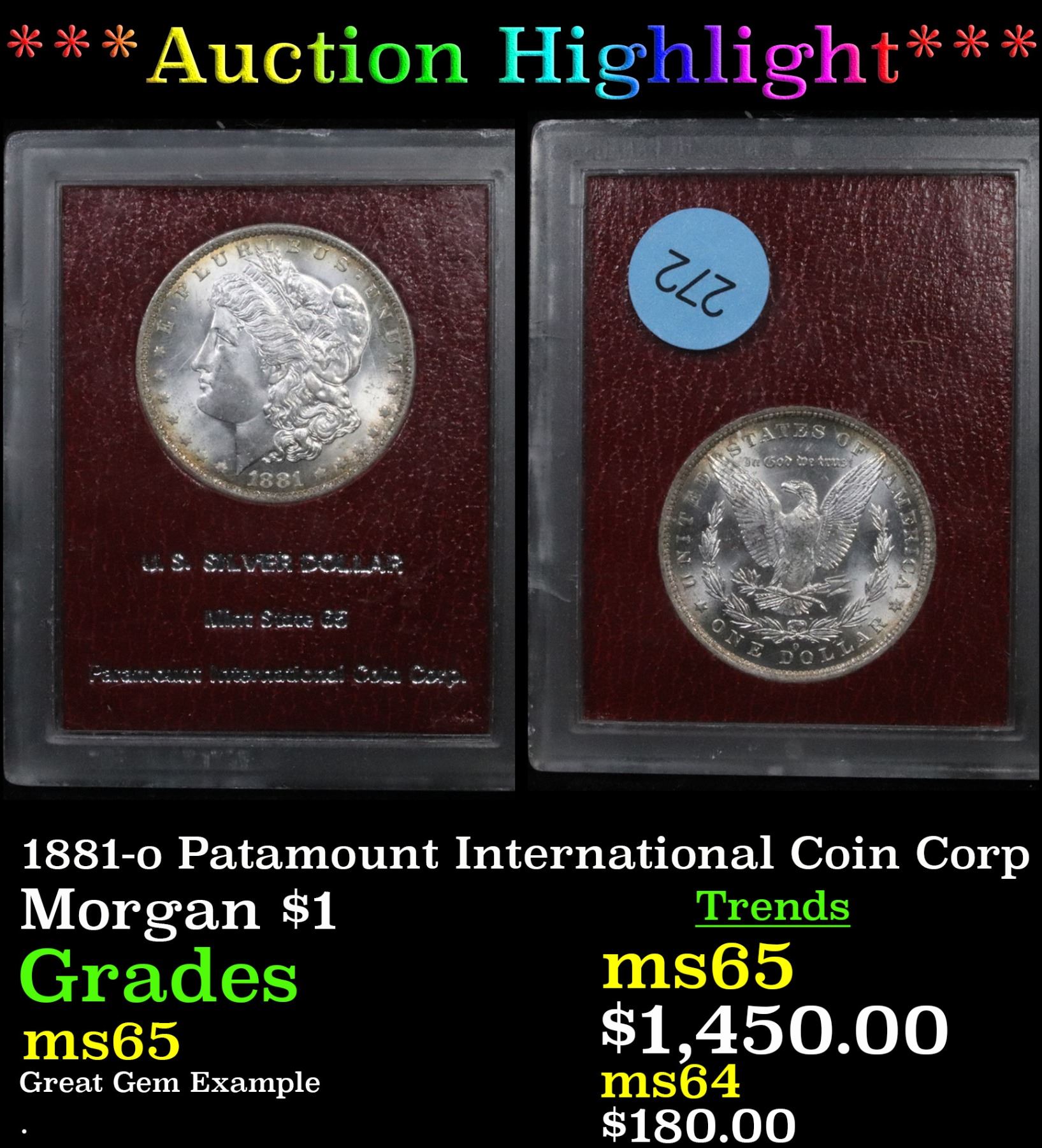 1881-o REDFIELD COLLECTION Morgan Dollar $1 Graded Paramount International. This coin is from the LaVere Redfield collection better known as �the Redfield Hoard.�� When he died in 1974, his estate was worth about $100 million, and in the basement of his modest home, behind a false wall was a hoard of over 411,000 silver dollars.� Most of the silver dollars were Morgan Dollars, and to a much lesser extent there were Peace Dollars too.� Many of them were still in their original Mint bags. Just to give an idea of the size of 411,000 silver dollars; it is a weight of about 11-tons. LaVere Redfield has been called thrifty, frugal, and eccentric. After the Stock Market Crash of 1929, Redfield arrives in Los Angeles, CA with his life's savings, and had decided it was a good time to invest in Oil and Stocks.� From California, Redfield moved to Reno, Nevada, and began to invest in Real Estate.� It seems he would take as much of his liquid assets as possible and convert it into silver dollars whenever possible.� That is most likely why he moved to Reno.� With all the Casinos using silver Dollars, the Banks always had a ready supply.� Estimates tell us that at one time LaVere Redfield had amassed over 600,000 silver dollars.� In 1963, his house was burglarized, and it was reported that approximately 100,000 of the silver dollars were stolen.� That is probably what encouraged him to build a false wall in front of his coal bin.� That way, the only thing he had to do was to just drop the bags down the Coal Shute.� If one would venture a guess, they would say that Redfield was not a numismatist, and they would be correct, but he did want his silver dollars unused and in original Mint bags whenever possible. Behind the wall was 400 bags of silver dollars, most of which had been sitting there for decades. When the coins were put up for auction, there were so many coins the lot could not be properly examined by the potential bidders, and when the hammer fell Steve Markoff of A-Mark Corporation purchased the entire lot for $7.3 million.� It has since been estimated that the wholesale value of the Redfield Hoard of silverdollars was about $20 million.� Paramount International Coin Corporation in Ohio was one of the main company�s used to sell the hoard.� They packaged the Redfield silver dollars in a hard plastic holder with a cardboard label surrounding the coin reading either "A Silver Dollar from the Redfield Collection," or "US Silver Dollar, Paramount International Coin Corp." The Redfield Hoard created quite a stir within the coin community.� It is not, nor has it ever been just about the coins, but rather it is the story that surrounds the coins.� That is what makes it so exciting.� Paramount graded this coin Mint State 65.