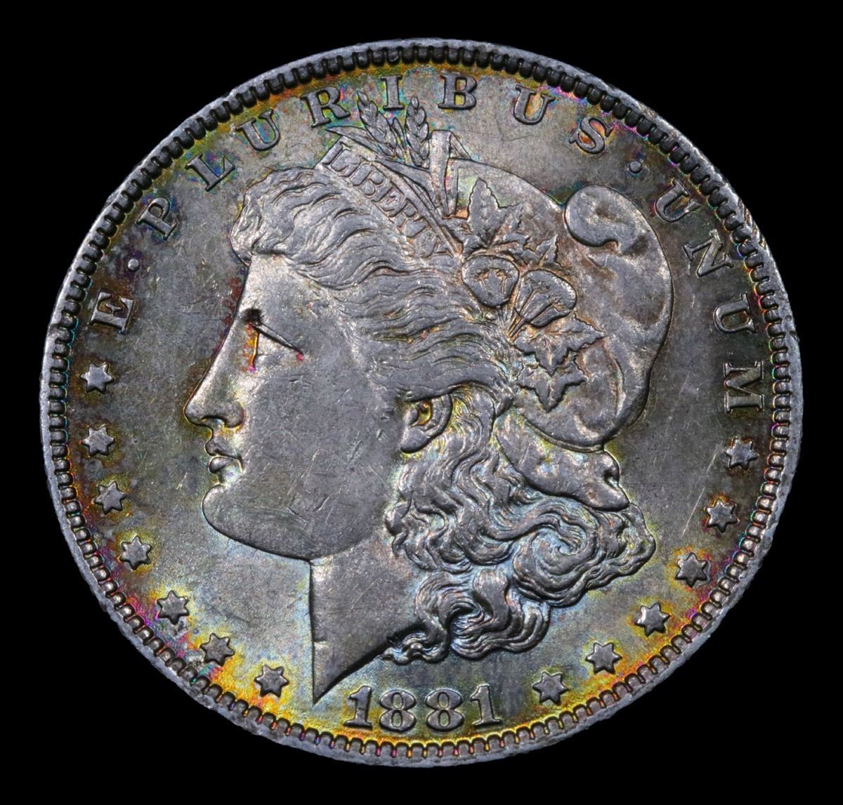 1881-o Rainbow Toned Morgan Dollar $1 Grades Select Unc.