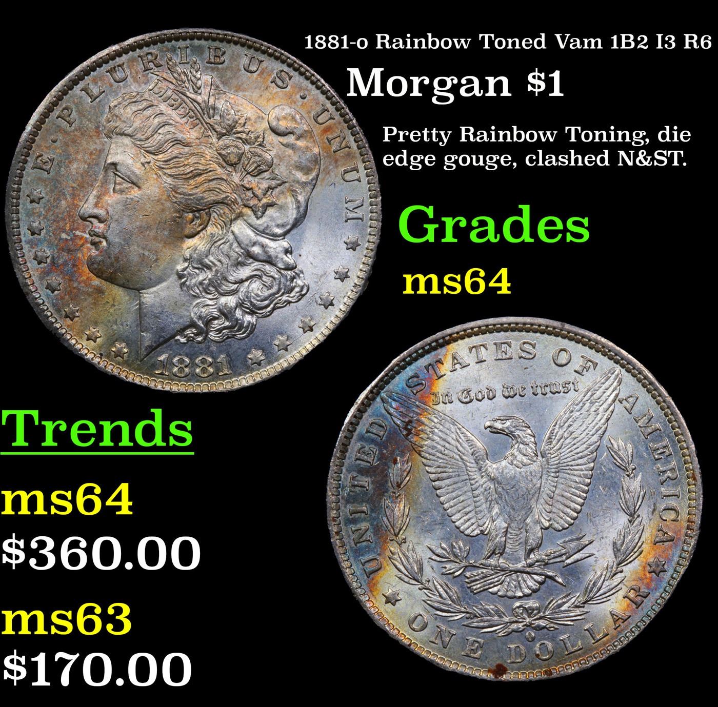 1881-o Rainbow Toned Vam 1B2 I3 R6 Morgan Dollar $1 Grades Choice Unc.