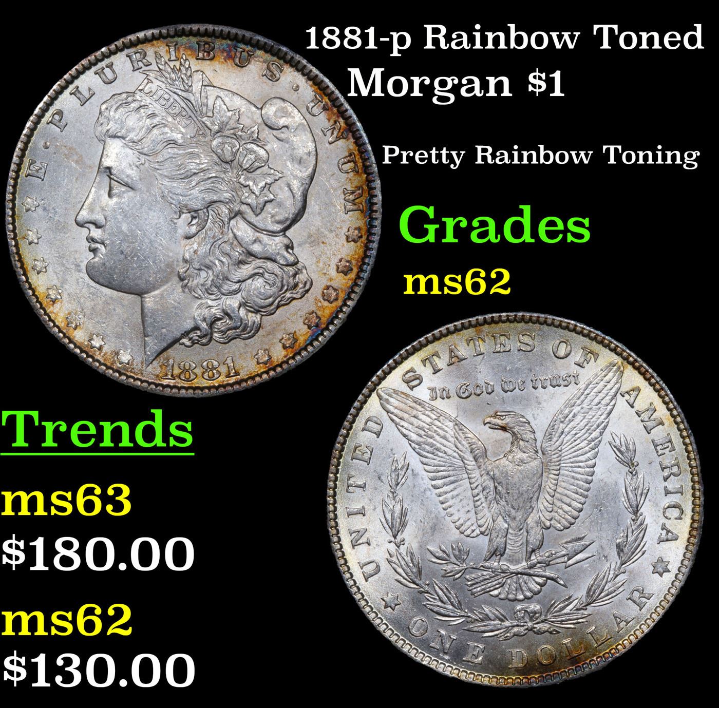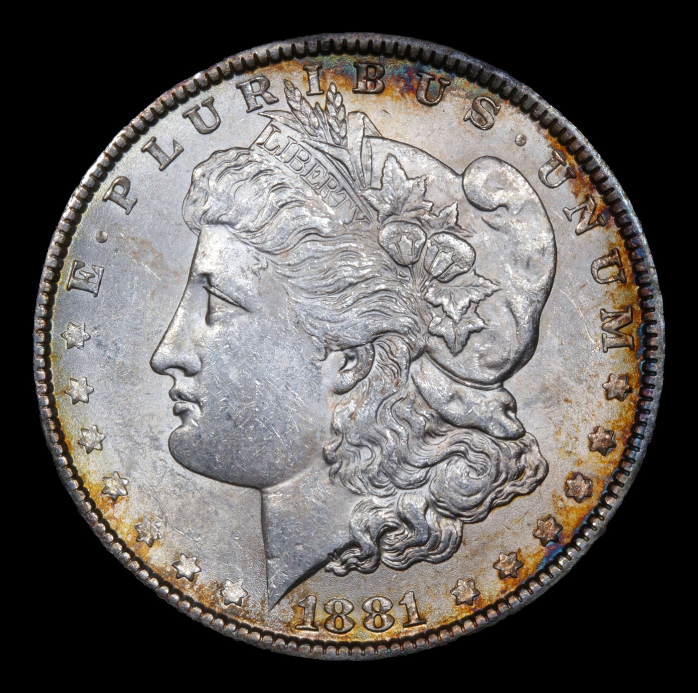 1881-p Rainbow Toned Morgan Dollar $1 Grades Select Unc.