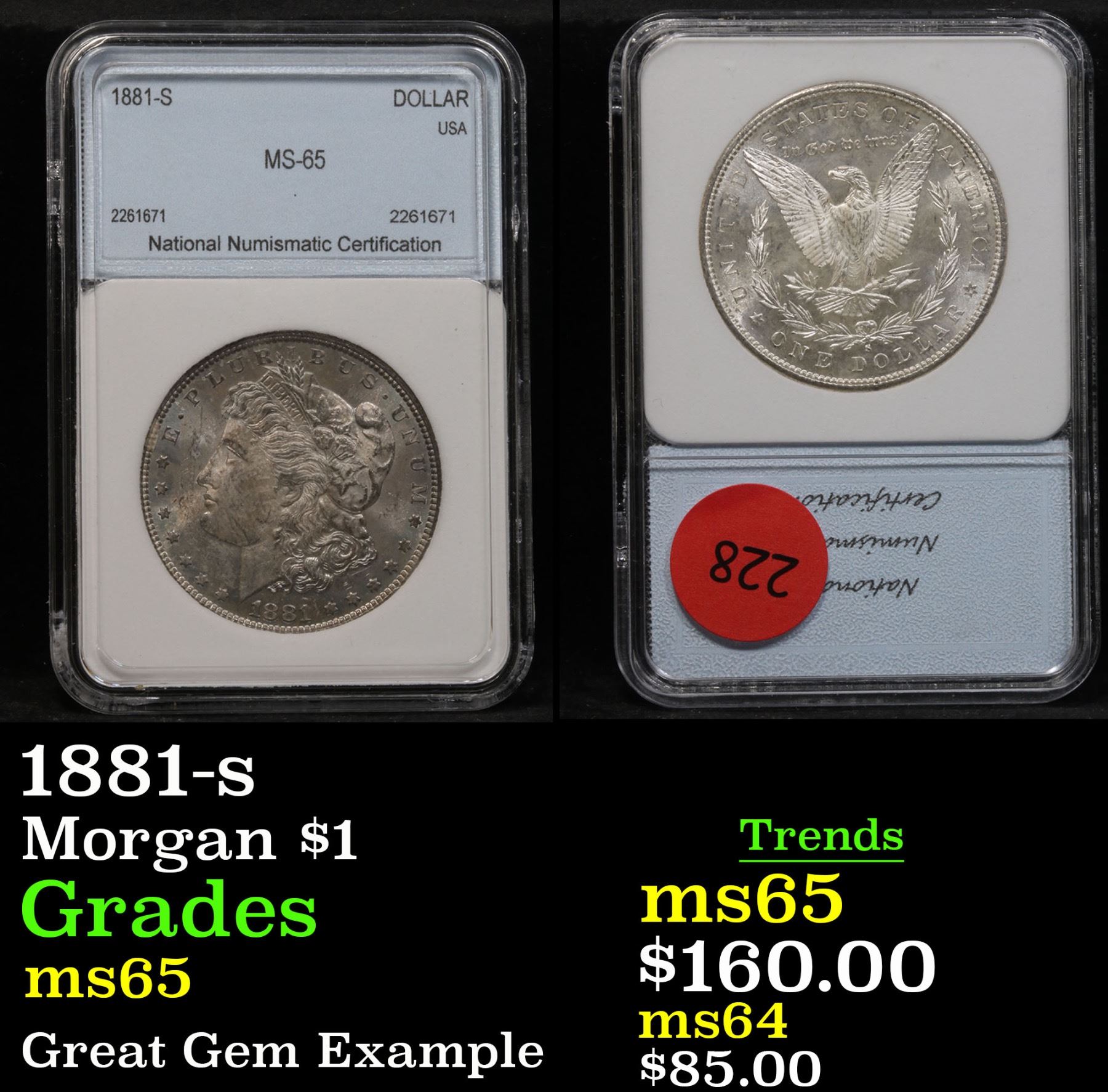 1881-s . Great Gem Example Morgan Dollar $1 By NNC.