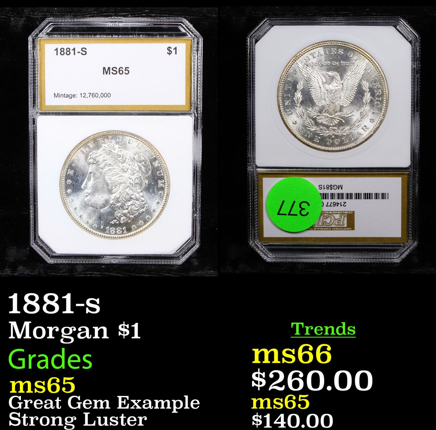 1881-s Morgan Dollar $1 Graded ms65 By PCI.
