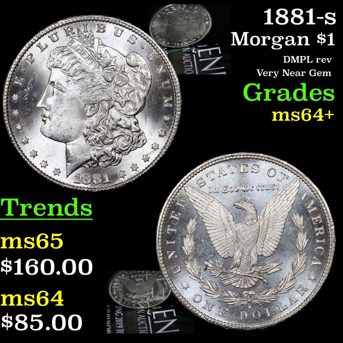 1881-s DMPL rev Very Near Gem Morgan Dollar $1 Grades Choice+ Unc.