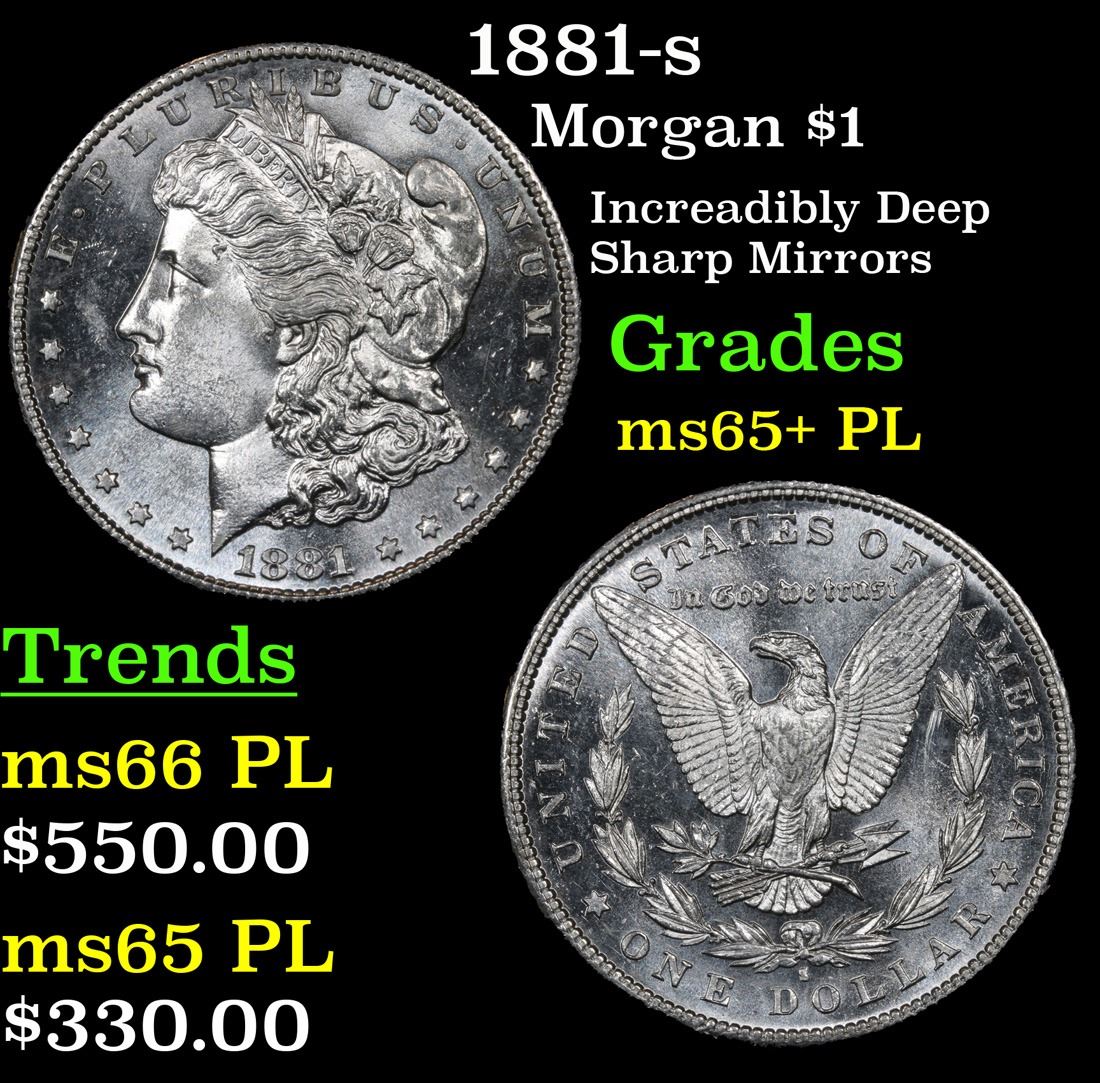 1881-s Increadibly Deep Sharp Mirrors . Morgan Dollar $1 Grades GEM+ PL.