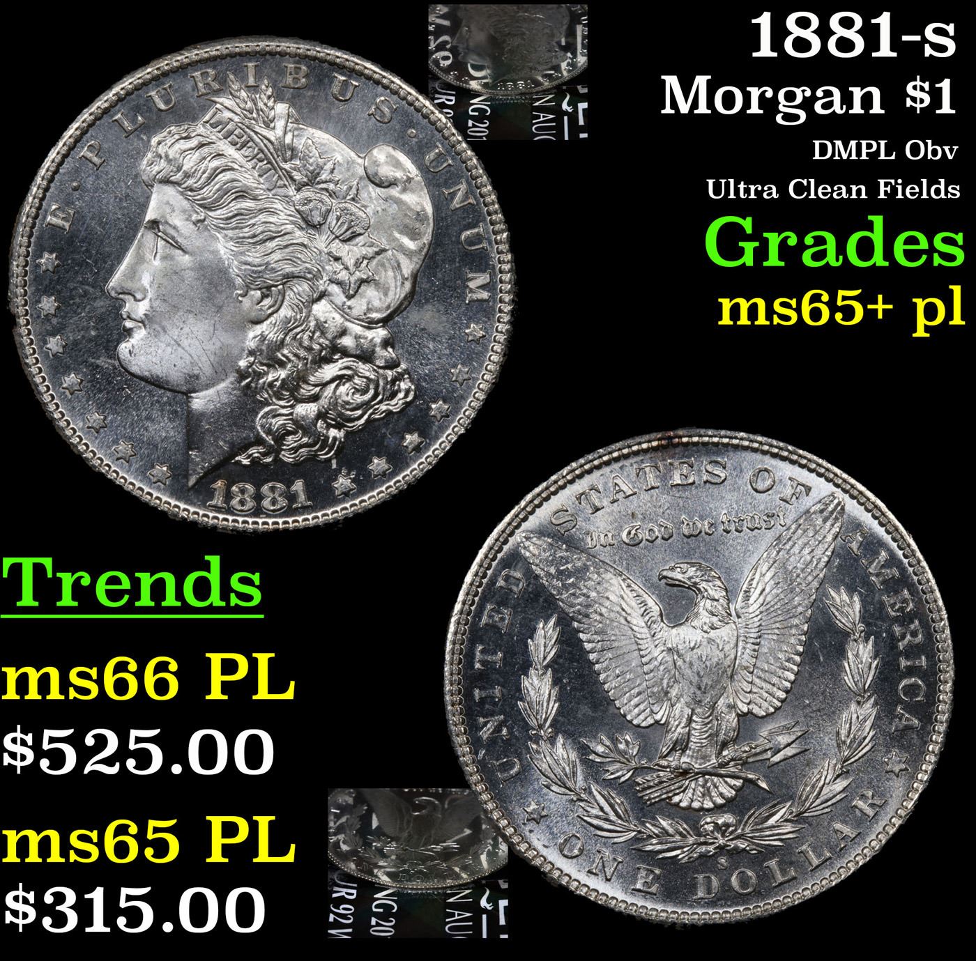 1881-s Morgan Dollar $1 Grades GEM+ PL.
