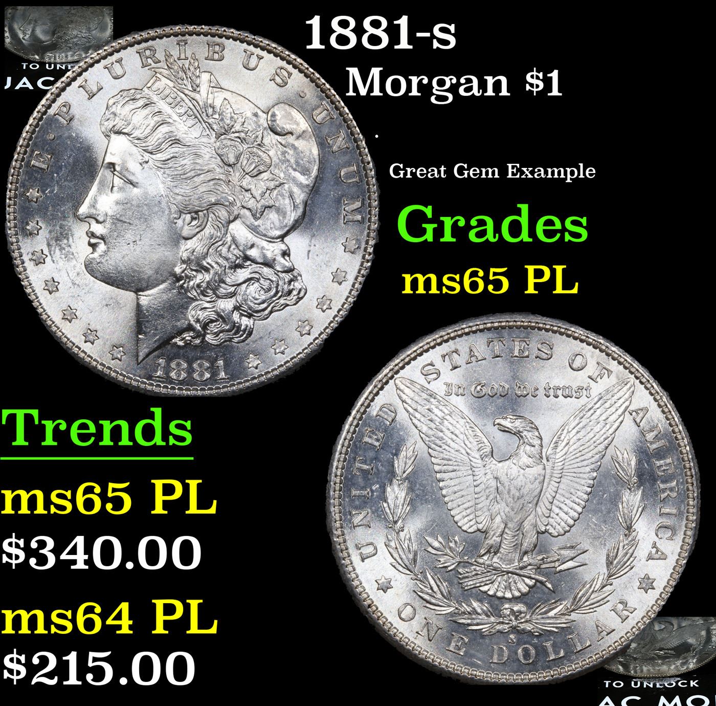 1881-s Morgan Dollar $1 Grades GEM Unc PL.