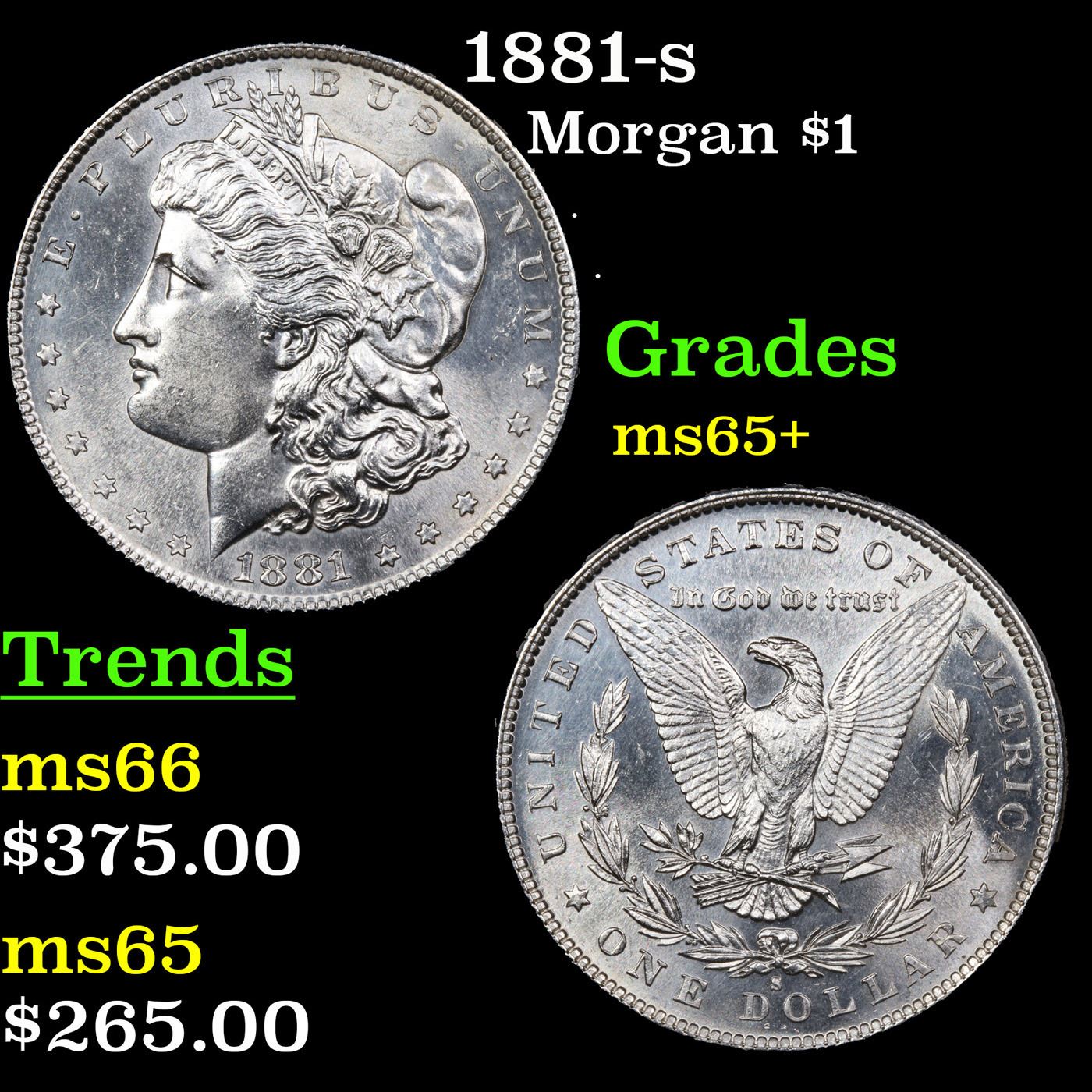 1881-s Morgan Dollar $1 Grades GEM+ Unc. 0
