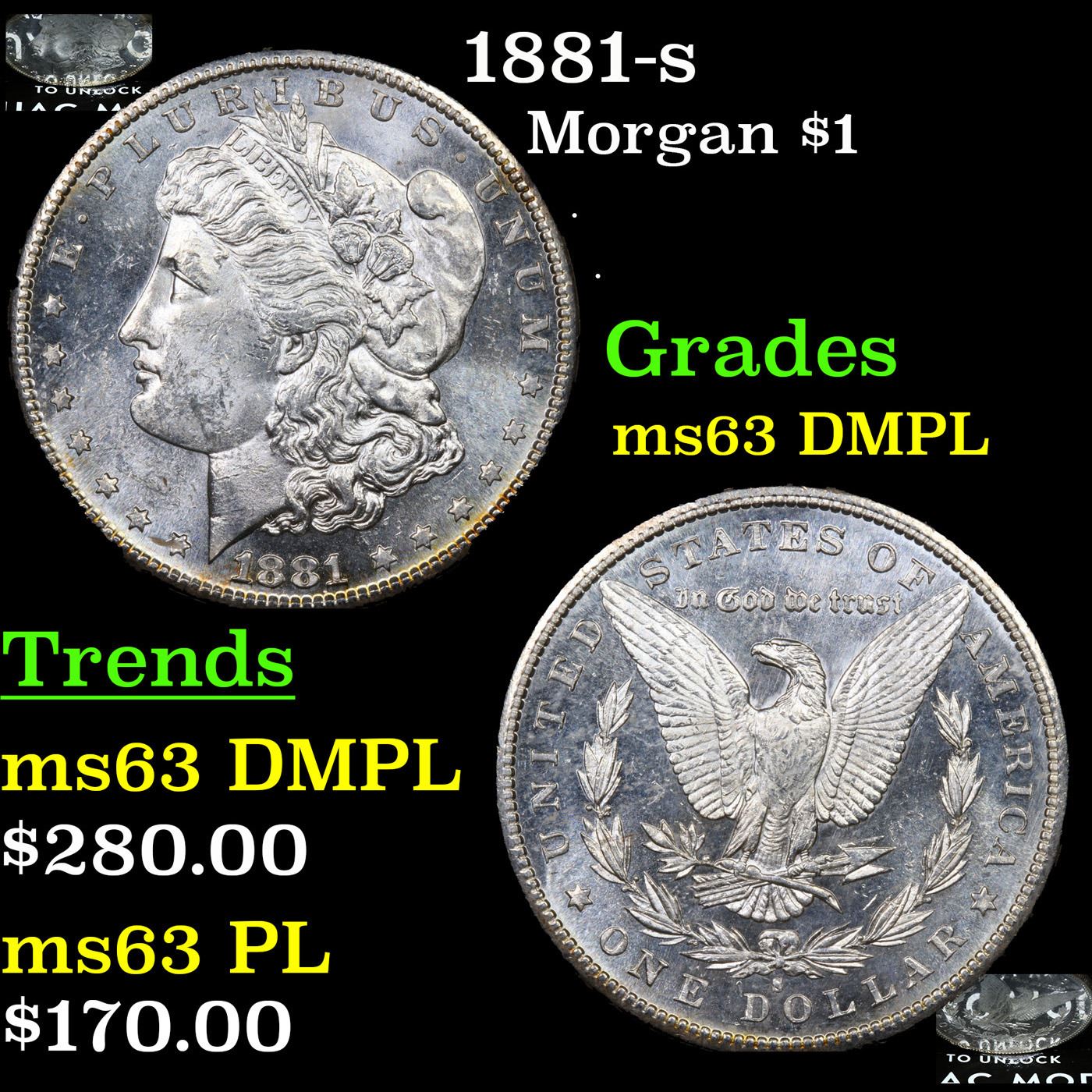 1881-s Morgan Dollar $1 Grades Select Unc DMPL.