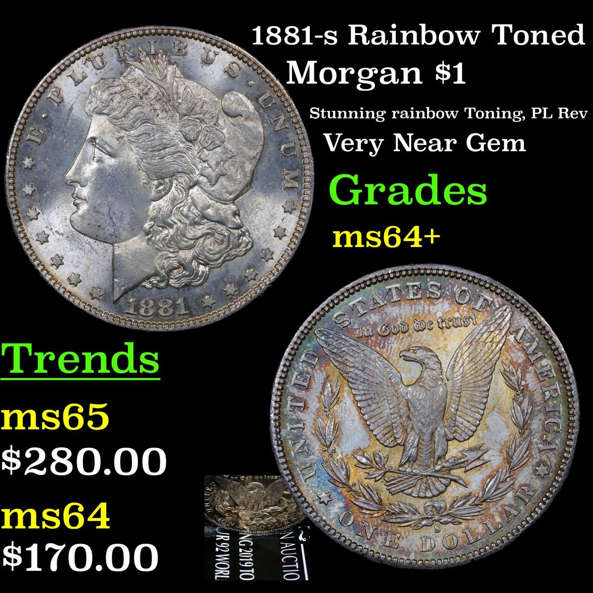 1881-s Rainbow Toned Morgan Dollar $1 Grades Choice+ Unc.