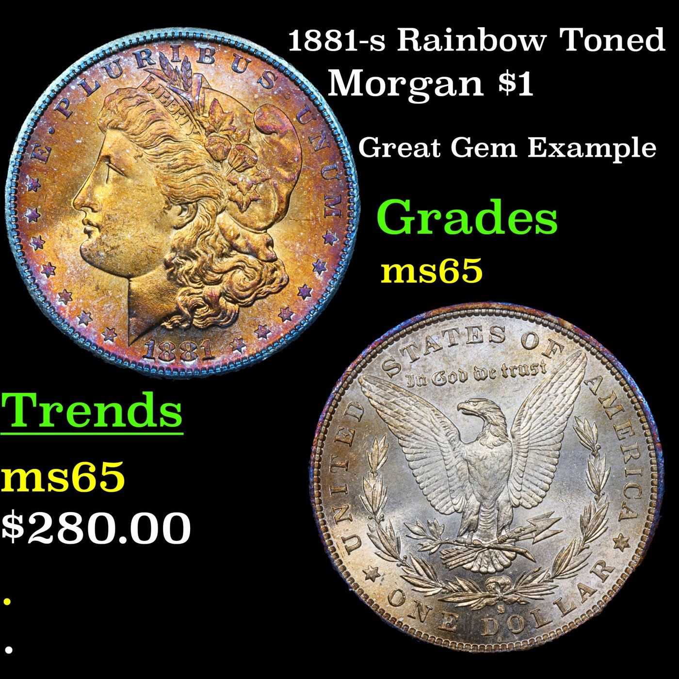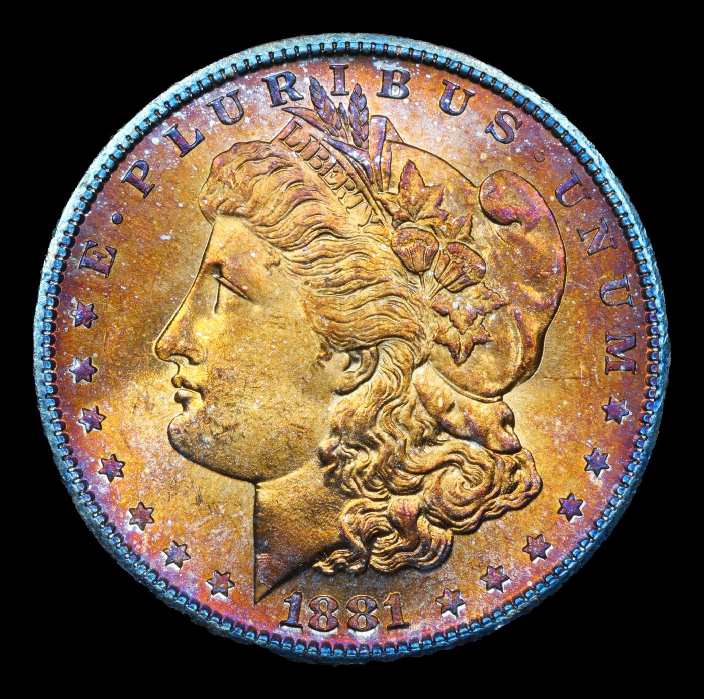 1881-s Rainbow Toned Morgan Dollar $1 Grades GEM Unc.