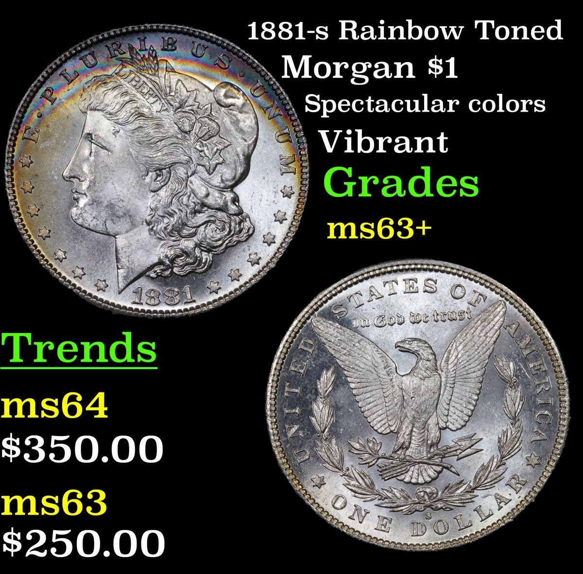 1881-s Rainbow Toned Spectacular colors Vibrant Morgan Dollar $1 Grades Select+ Unc. A Corey's Pick, Bid to Win Coin