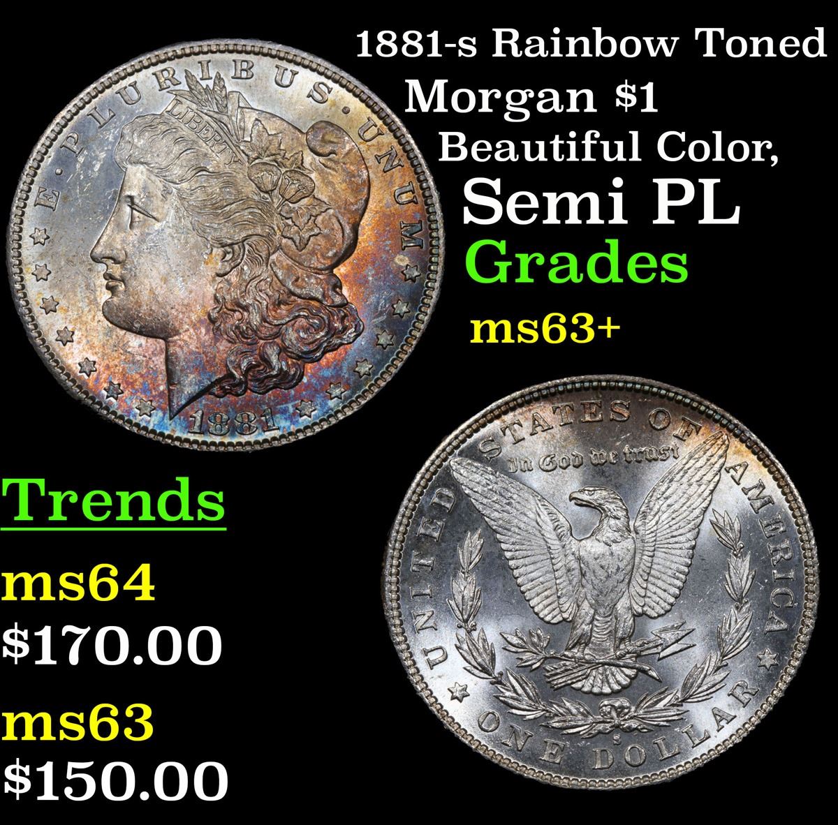 1881-s Rainbow Toned Beautiful Color, Semi PL Morgan Dollar $1 Grades Select+ Unc.