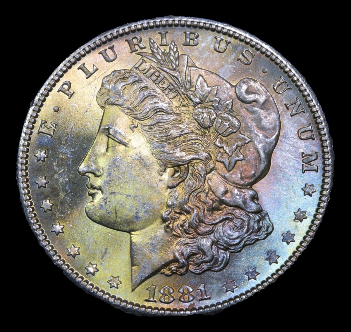 1881-s Rainbow Toned Beautiful Toning Pl Rev Morgan Dollar $1 Grades Select+ Unc. A Corey's Pick