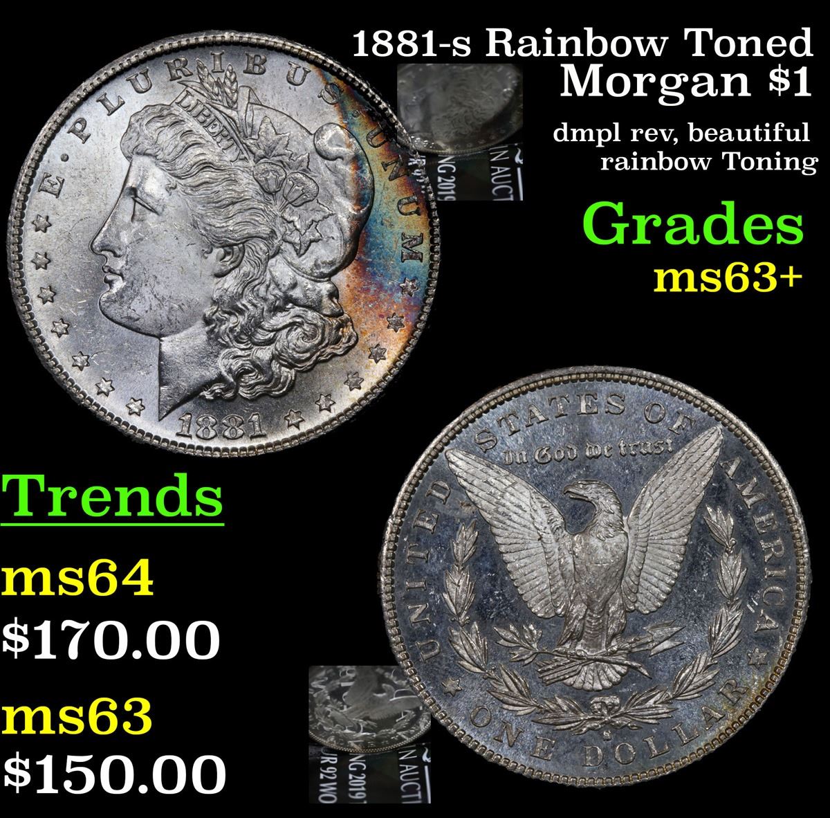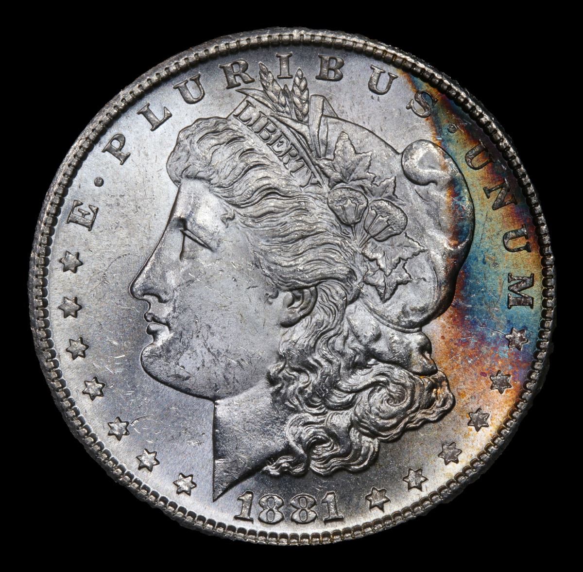 1881-s Rainbow Toned dmpl rev, beautiful rainbow Toning . Morgan Dollar $1 Grades Select+ Unc. A Corey's Pick