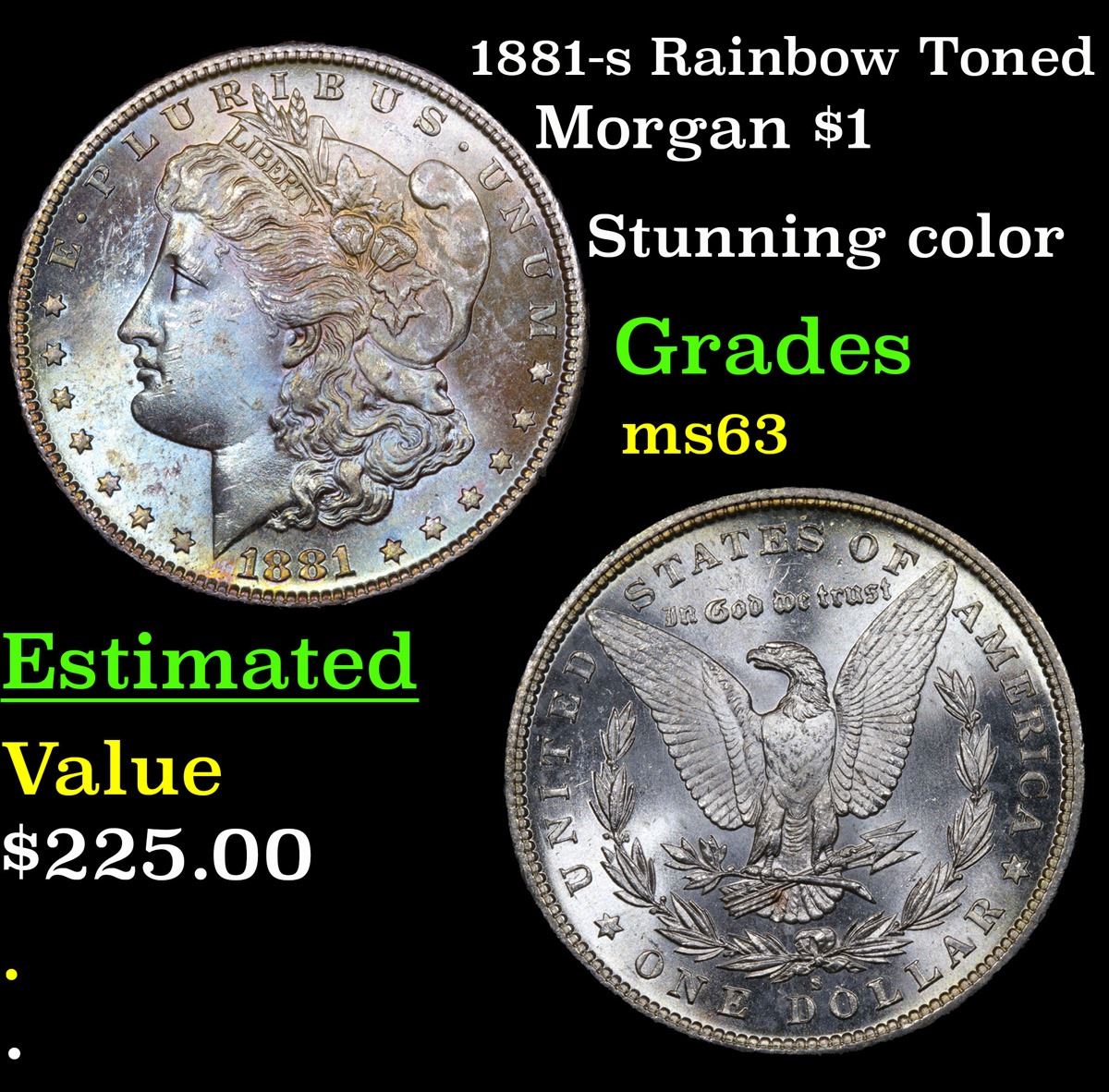 1881-s Rainbow Toned Stunning color . Morgan Dollar $1 Grades Select Unc. A Corey's Pick