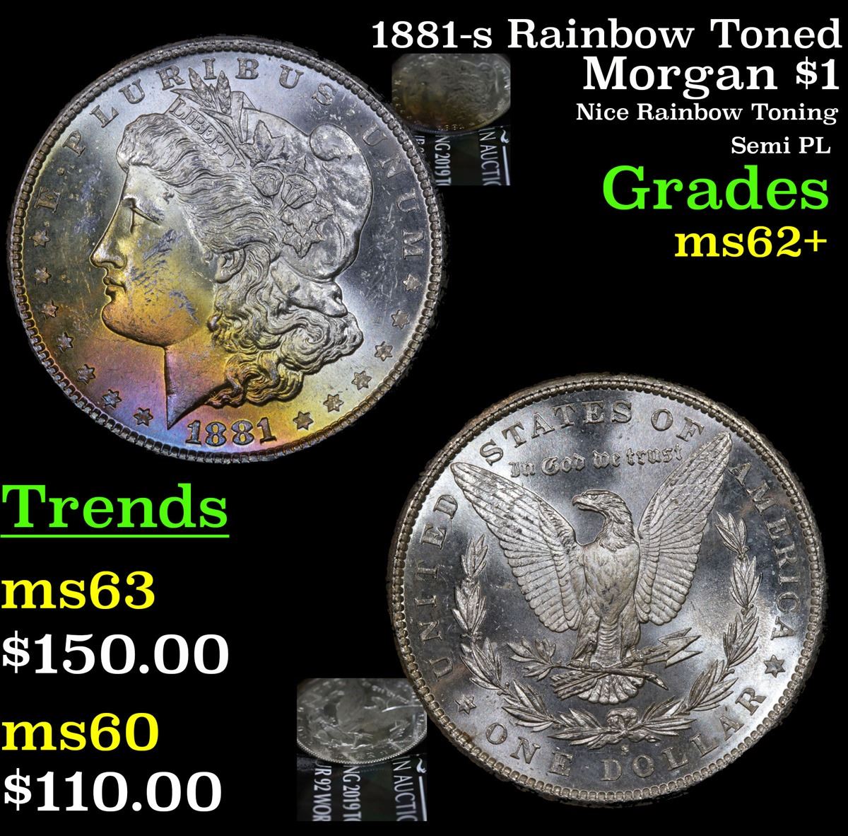 1881-s Rainbow Toned Nice Rainbow Toning Semi PL Morgan Dollar $1 Grades Select Unc.
