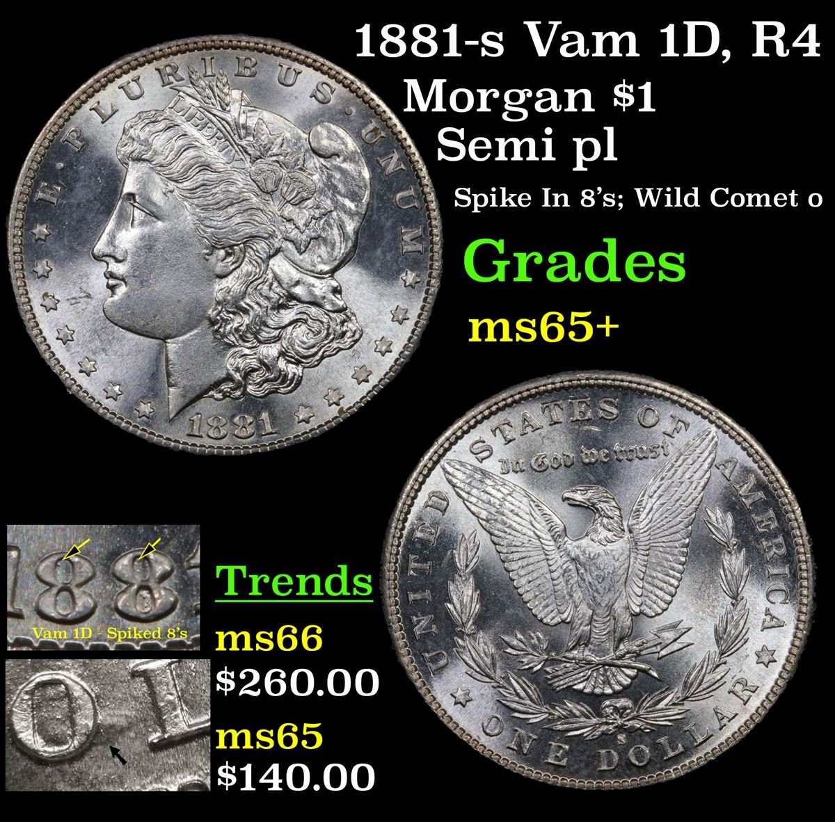 1881-s Vam 1D, R4 Morgan Dollar $1 Grades GEM+ Unc.