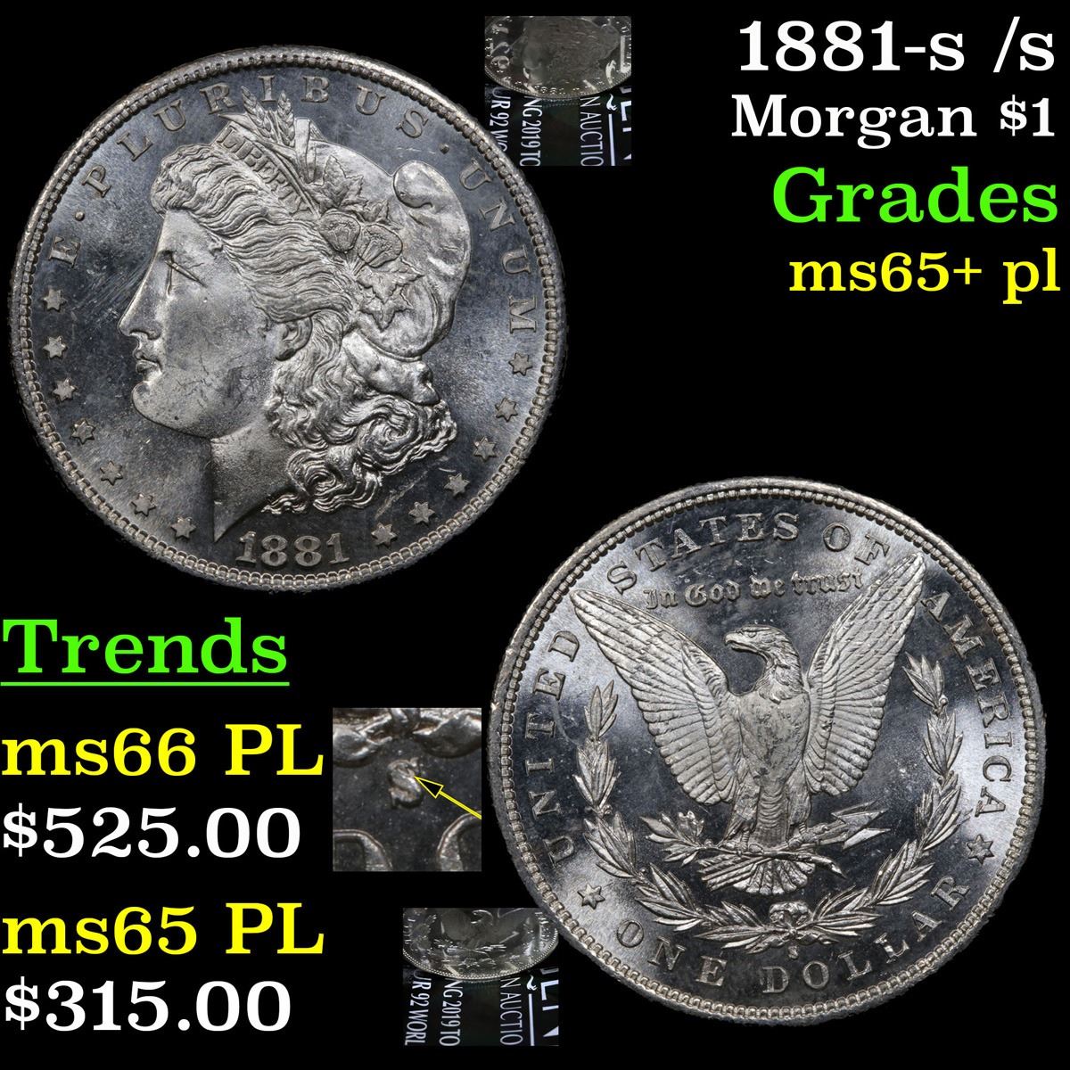 1881-s /s Morgan Dollar $1 Grades GEM+ PL.