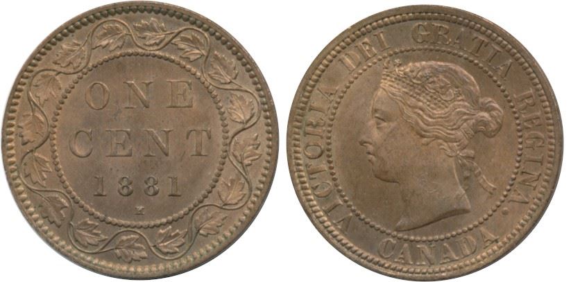 1881H 1¢. A nice MS63RB+ issue. Strong lustre.
