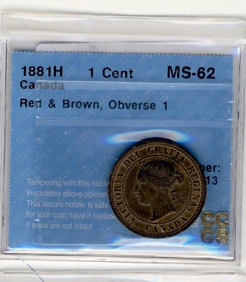 1881H 1 Cent, CCCS MS62RB; Obverse 1.