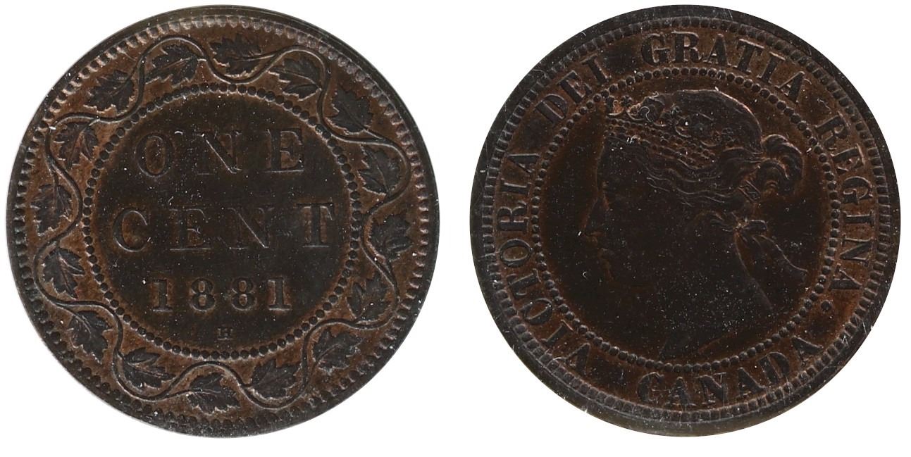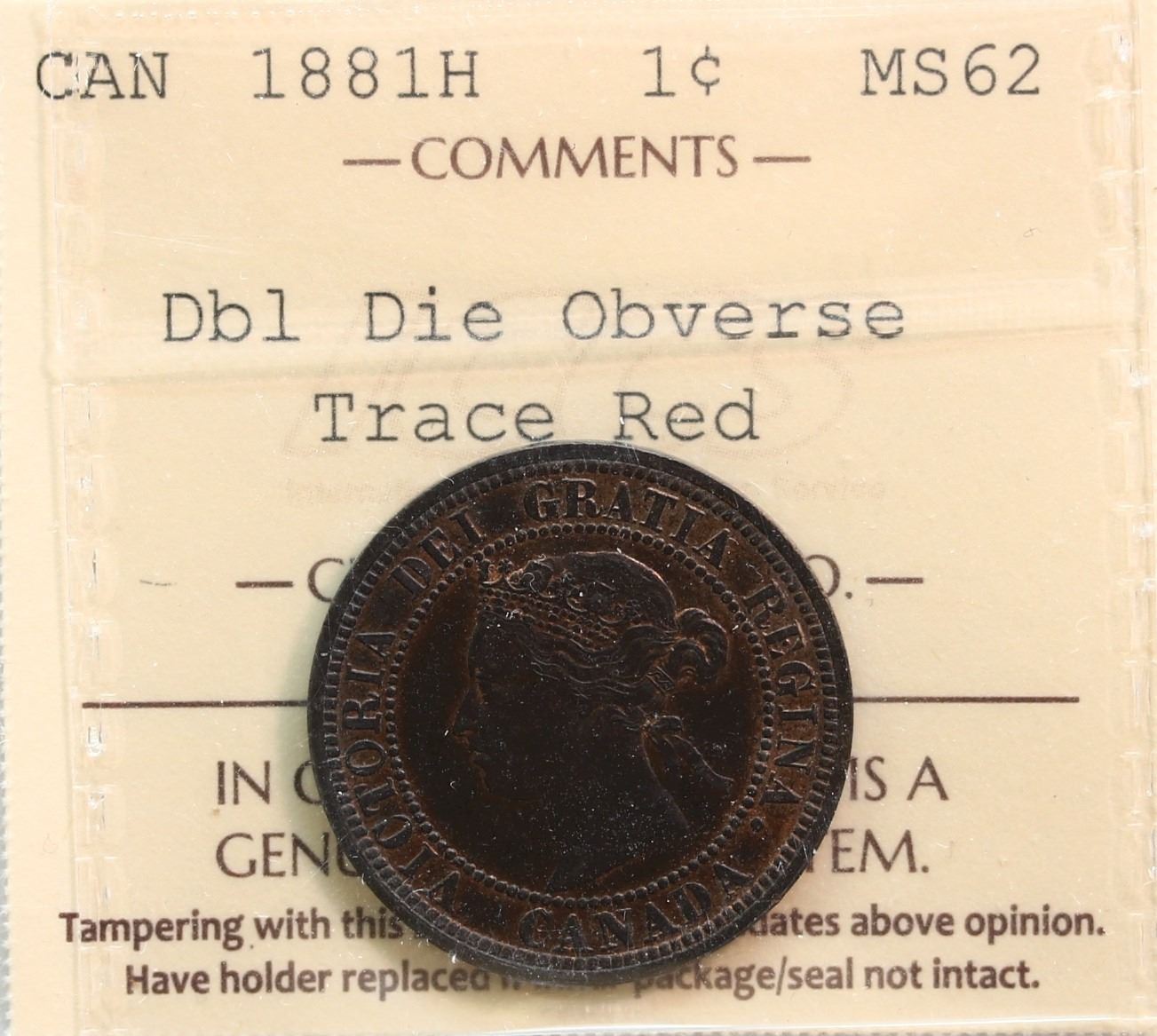 1881H 1¢ "Dbl Die Obverse" ICCS Choice Mint State-62 Trace Red. Very scarce in high grade.