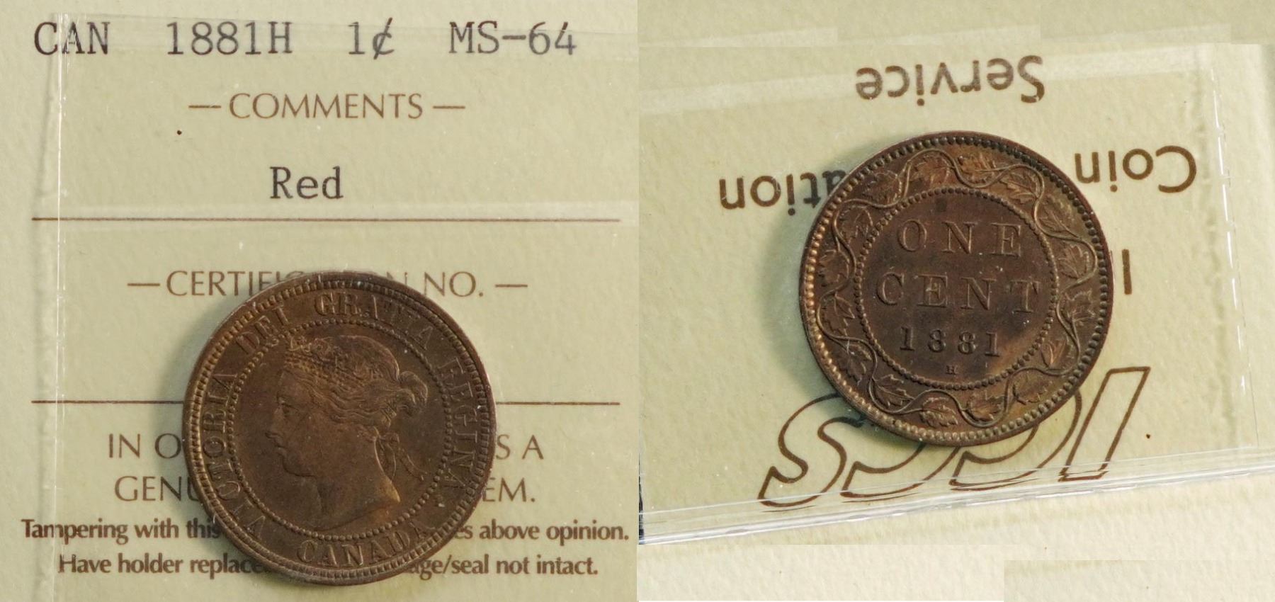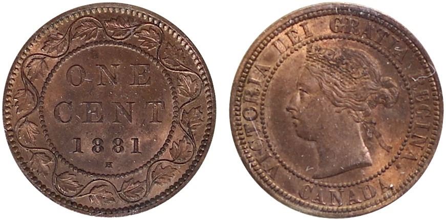 1881H 1¢ ICCS Choice Mint State-64RED.