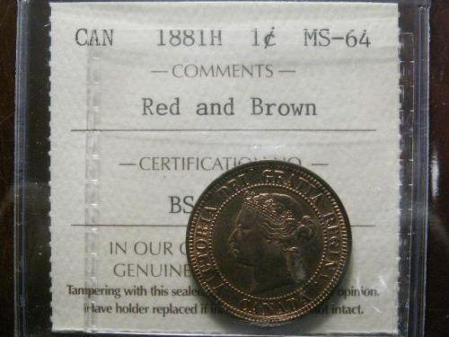 1881H 1¢ ICCS MS64 Red/brown, Excellent strike with clean fields and great surfaces. Tough date!