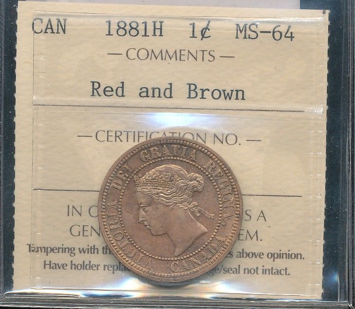 1881H 1¢ ICCS MS64RB.